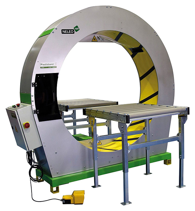 Упаковочная машина Plasticband Neleo 160 предназначена для упаковки, группировки и защиты длинномерных и крупногабаритных изделий, таких как молдинги, профили, алюминиевые трубы, элементы мебели и дверей в стрейч-пленку на предприятиях различных направлений. Модель оснащена ножной педалью для активации цикла упаковки. Особенности: