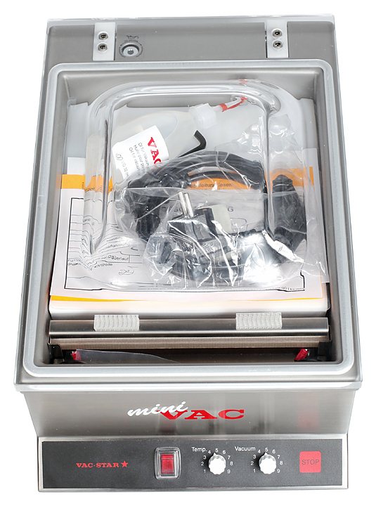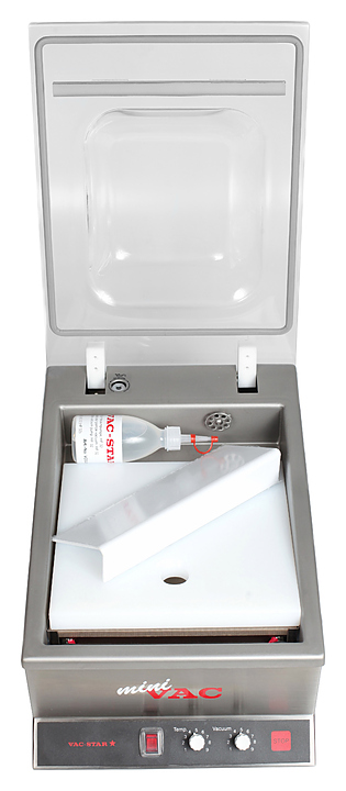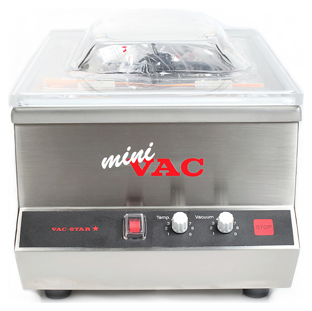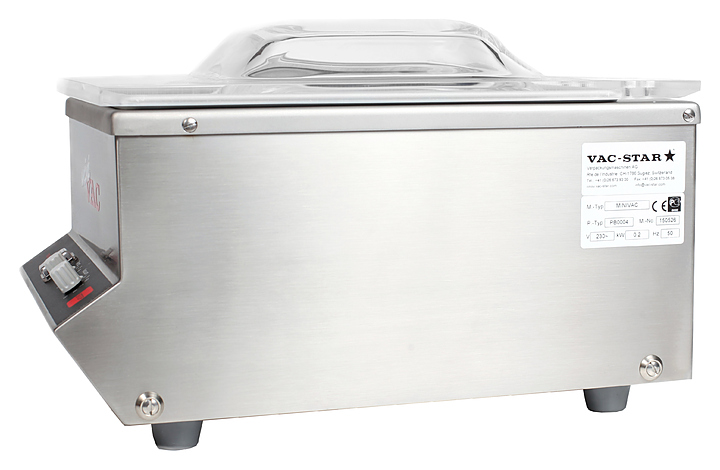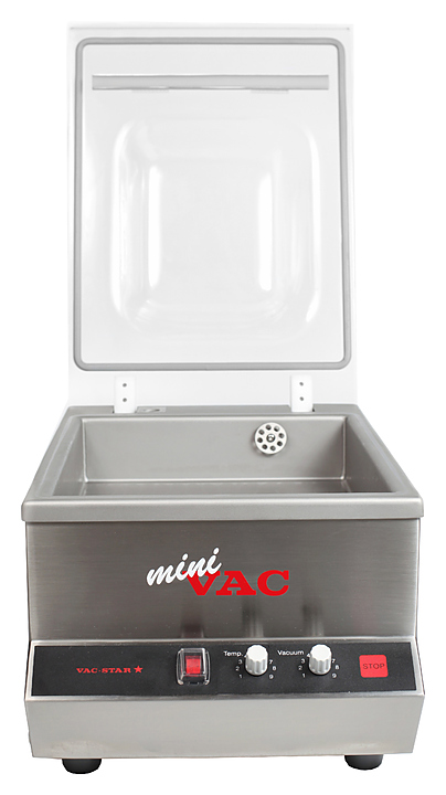 Вакуумный упаковщик VAC-STAR MiniVac используется на предприятиях общественного питания для упаковки продуктов питания, приготовленных по технологии Sous Vide в вакуумные пакеты. Такой метод упаковки позволяет длительное время сохранять свежесть продуктов. Корпус и камера полностью изготовлены из высококачественной нержавеющей стали, куполообразная крышка - из прозрачного акрилового пластика. В комплект поставки входят вакуумное масло, вкладыш-пластина и наклонная вставка для упаковки жидкостей. Особенности: