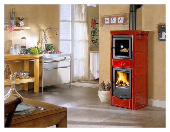 Дровяная печь-камин La Nordica TermoNicoletta Forno D.S.A. бордовая