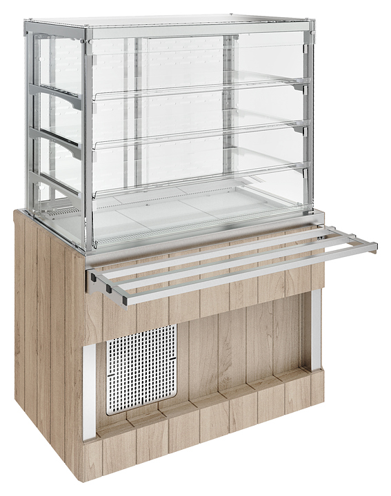 Холодильная витрина Refettorio Capital RC22A используется в составе линии раздачи Capital на предприятиях общественного питания и торговли для кратковременного хранения, демонстрации и раздачи холодных напитков, салатов, кисломолочных продуктов, кондитерских изделий, десертов и других блюд, требующих хранения в охлажденном состоянии. Модель оснащена 3 вместительными внутренними полками. Столешница выполнена из нержавеющей листовой стали толщиной 1,2 мм, фасад - из ламинированного МДФ.