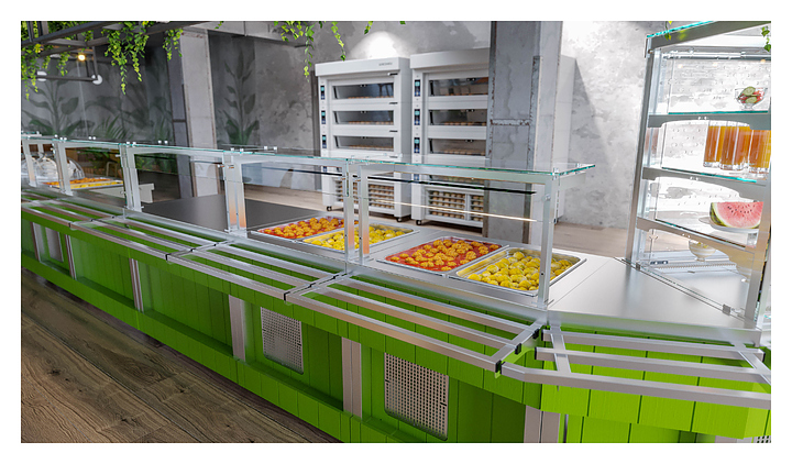Холодильный прилавок Refettorio Capital RC12A используется в составе линии раздачи Capital на предприятиях общественного питания и торговли для выкладки, демонстрации и последующей раздачи порционных холодных закусок и третьих блюд, требующих хранения в охлажденном состоянии. Модель оснащена охлаждаемой столешницей с углублением и открытым доступом к продуктам. Столешница и рабочая ванна выполнены из нержавеющей листовой стали, фасад - из ламинированного МДФ. Особенности: