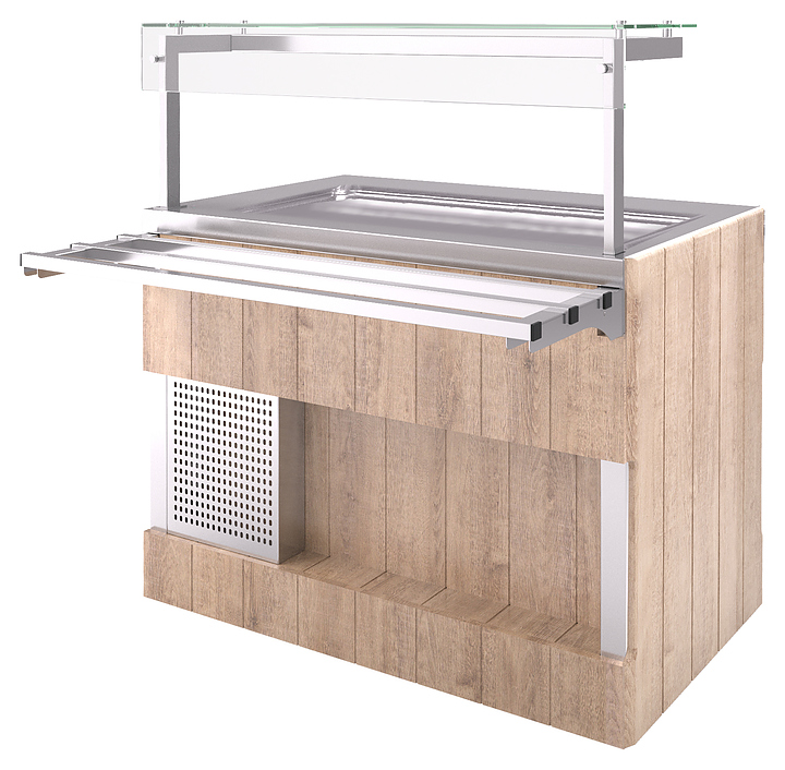 Холодильный прилавок Refettorio Capital RC13AS используется в составе линии раздачи Capital на предприятиях общественного питания и торговли для выкладки, демонстрации и последующей раздачи порционных холодных закусок и третьих блюд, требующих хранения в охлажденном состоянии. Модель оснащена охлаждаемой столешницей с углублением и открытым доступом к продуктам. Столешница выполнена из кварцевого агломерата, рабочая ванна - из нержавеющей листовой стали, фасад - из ламинированного МДФ. Особенности: