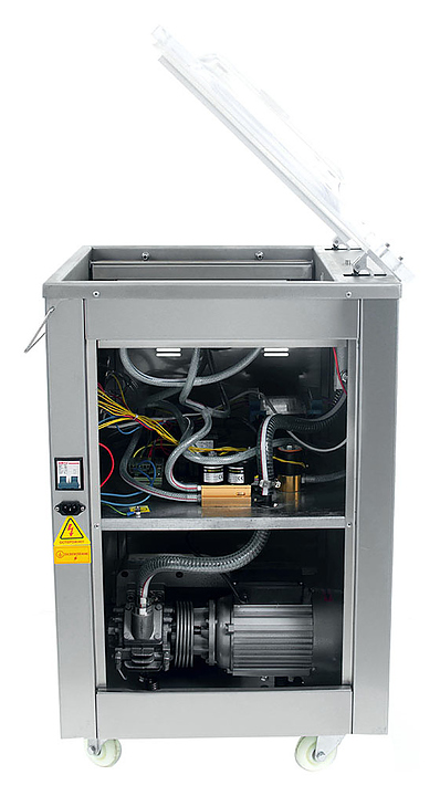 Однокамерный вакуумный упаковщик Foodatlas DZ-500/2H Eco используется на предприятиях пищевой промышленности, общественного питания и торговли для упаковки в вакуум продуктов питания, жидкости, готовых блюд, продуктов химической промышленности, электронных устройств, измерительных приборов и твердых редких драгоценных металлов для увеличения срока хранения. Для упаковки используются ПЭТ, ПЭ нейлоновая и алюминиевая ленты. Корпус и камера вакуумирования выполнены из нержавеющей стали. Особенности: