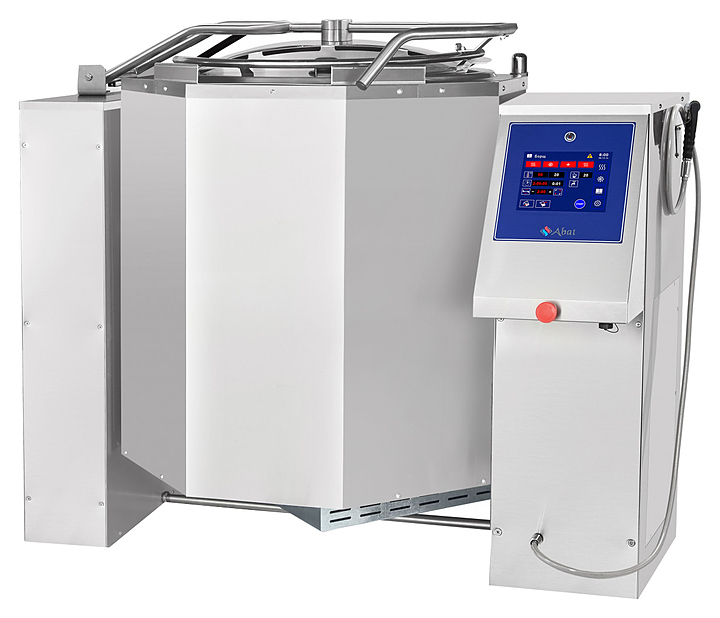 Варочный котел Abat КПЭМ-350-ОМП с функциями опрокидывания, перемешивания и охлаждения предназначен для приготовления вторых и третьих блюд, бульонов, соусов и десертов, а также для кипячения воды на предприятиях пищевой промышленности и общественного питания. Модель оснащена панелью управления с электронным TFT-экраном и пультом программного управления. Конструкция выполнена из аустенитной нержавеющей стали AISI 304, варочный сосуд - из кислотостойкой нержавеющей стали марки AISI 316. В комплект поставки входит монтажная бетонируемая в пол рама. Режимы работы котла: