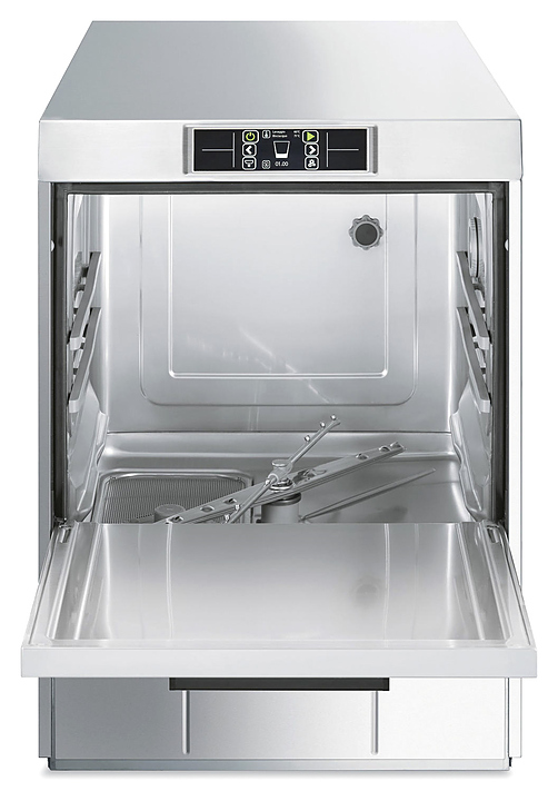 Посудомоечная машина с фронтальной загрузкой Smeg UD522D серии Topline используется на предприятиях общественного питания и торговли для мойки столовых приборов, тарелок, стаканов, чашек и другой посуды. Модель оснащена электронной панелью управления. Корпус выполнен из нержавеющей стали AISI 304. Комплектация: