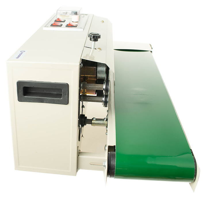 Горизонтальный роликовый запайщик Foodatlas FR-900 Pro используется на предприятиях общественного питания и торговли для автоматической конвейерной упаковки продуктов питания, напитков, медицинских препаратов, металлоизделий, косметики, книг, предметов искусства и другой продукции. Модель оснащена 2 планками нагрева и 2 планками охлаждения, что позволяет датировать шов запайки, улучшить внешний вид и качество запайки пленки и увеличить скорость работы. Дополнительные характеристики: