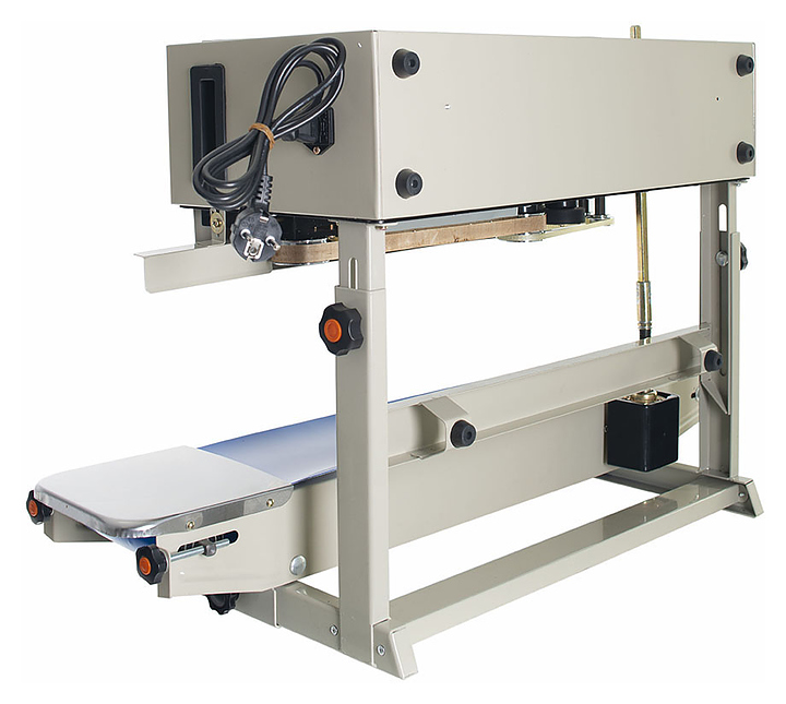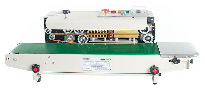 Вертикальный роликовый запайщик Foodatlas FR-770 Pro используется на предприятиях общественного питания и торговли для автоматической конвейерной упаковки продуктов питания, напитков, медицинских препаратов, металлоизделий, косметики, книг, предметов искусства и другой продукции. Модель оснащена 2 планками нагрева и 2 планками охлаждения, что позволяет проставлять дату на шве, улучшить внешний вид и качество запайки пленки и увеличить скорость работы. Дополнительные характеристики: