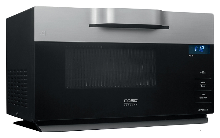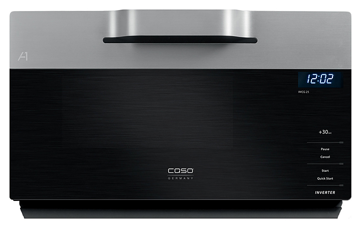 Инверторная микроволновая печь CASO IMCG25 предназначена для разогрева, размораживания и приготовления продуктов в частных домах, квартирах, отелях и офисах. Модель оснащена сенсорной панелью управления и дисплем с часами. Передняя панель выполнена из алюминия и черного стекла, внутреннее покрытие - из нержавеющей стали. Режимы работы: