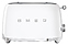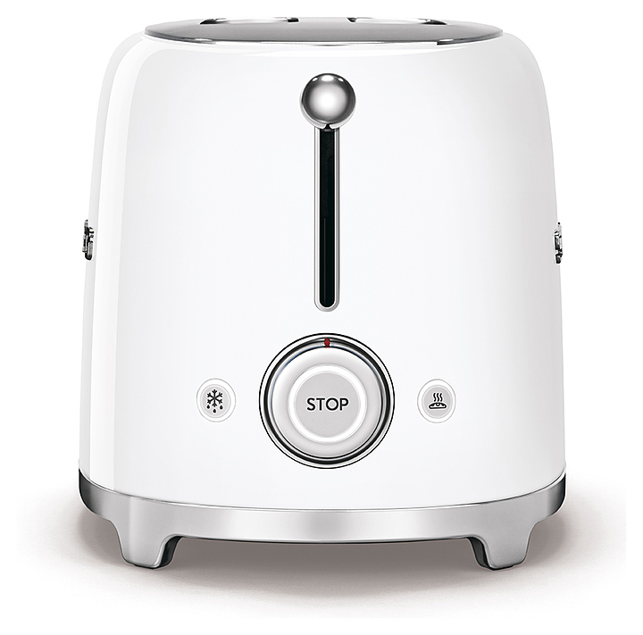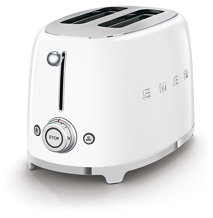 Тостер Smeg TSF01WHEU используется для обжаривания ломтиков тостового хлеба. С помощью дополнительно приобретаемых держателей тостер также можно применять для подогрева булочек или сэндвичей. Прибор отличается уникальным дизайном благодаря исполнению в стиле 50-х годов. В комплект поставки входит съемный поддон из нержавеющей стали для крошек. Особенности: