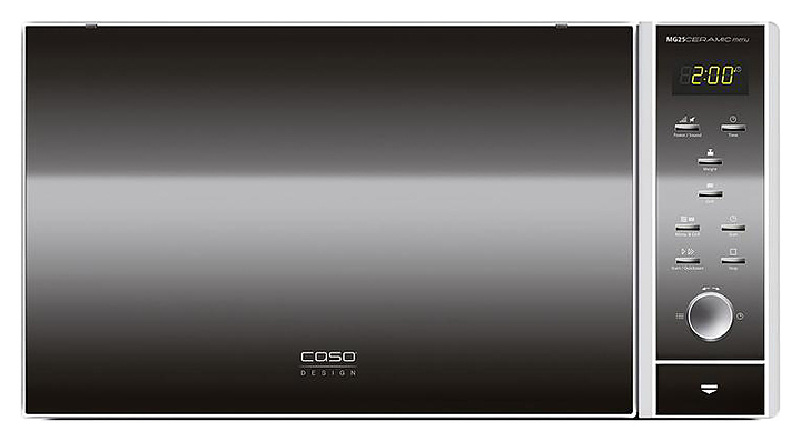 Микроволновая печь с грилем CASO MG25 Ceramic menu предназначена для разогрева, размораживания и приготовления продуктов в частных домах, квартирах, отелях и офисах. Модель оснащена электронной панелью управления и дисплем с часами. Внутреннее покрытие выполнено из нержавеющей стали, дно - из керамики. Режимы работы: