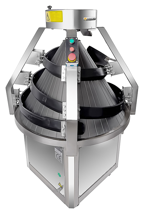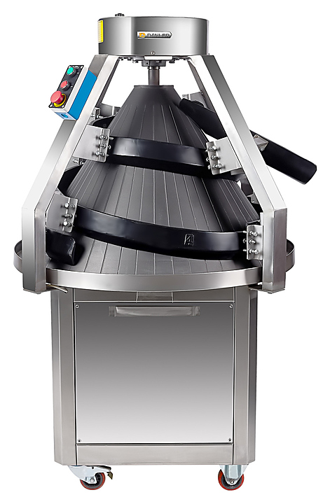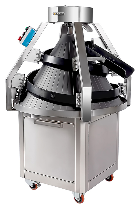 Конусный тестоокруглитель Danler RS-2000 используется на предприятиях пищевой промышленности и общественного питания, в пекарнях и кондитерских для округления тестовых заготовок. Порция теста, подаваемая после отделителя, направляется вверх по вращающейся спирали, постепенно закругляясь и затем скатываясь вниз по желобу. Модель оснащена не регулируемыми желобами. Дополнительные характеристики: