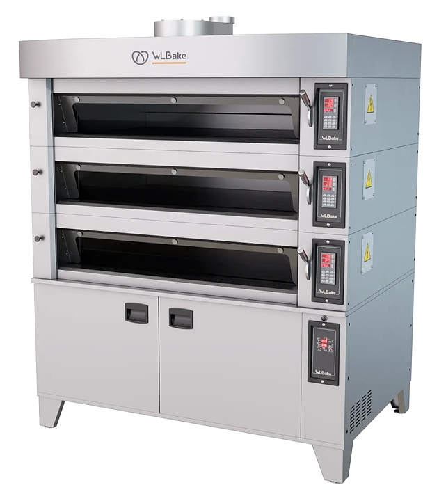 Подовая печь WLBake 3D.3T4060 серии DECK используется на предприятиях пищевой промышленности, в пекарнях и кондитерских для выпечки мелкоштучной хлебобулочной продукции и мучных кондитерских изделий. Модель оснащена пароувлажнением на каждый под. Особенности: