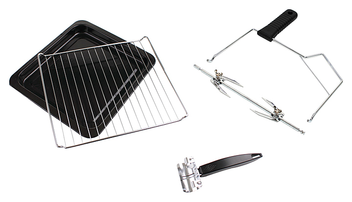 Мини-печь Rommelsbacher BG 1805/E предназначена для приготовления и разогрева различных блюд, выпечки кондитерских и хлебобулочных изделий в квартирах, частных домах, кафе и ресторанах. Модель оснащена механическим управлением, внутренней подсветкой и защитой от перегрева. Нагревательные элементы выполнены из нержавеющей стали. Прибор имеет cтильный современный дизайн, удобен и прост в использовании. В комплект поставки входят эмалированный противень со съемной ручкой, вертел с ручкой, хромированная решетка для гриля и поддон для крошек. Особенности: