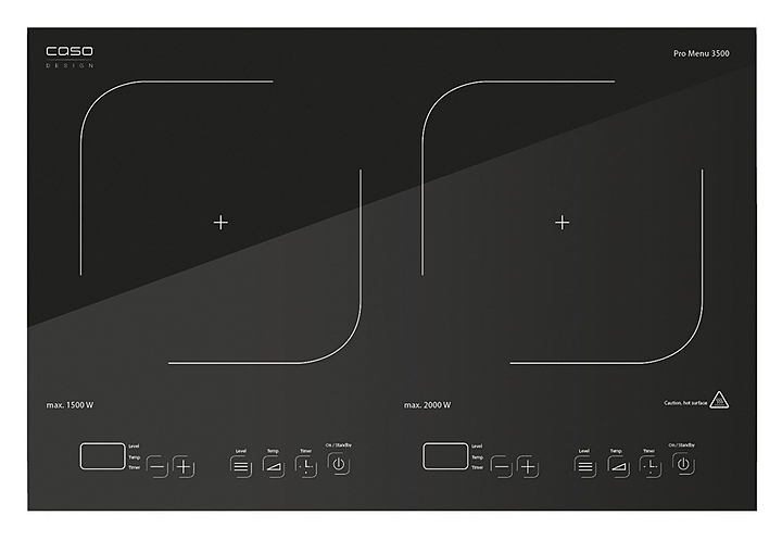 Настольная индукционная плита CASO Pro Menu 3500 предназначена для приготовления и быстрого разогрева блюд в частных домах, квартирах, отелях и офисах. Модель оснащена 2 конфорками, сенсорной панелью управления с большим цифровым дисплеем и датчиком наличия посуды на конфорке. Корпус выполнен из стеклокерамики. Особенности: