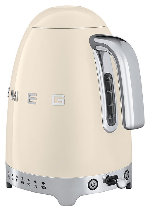 Чайник Smeg KLF04CREU предназначен для быстрого подогрева воды в частных домах и квартирах. Модель выполнена в стиле 50-х годов. Устройство оснащено световыми индикаторами температуры, съемным моющимся фильтром из нержавеющей стали, отделением для хранения шнура в базе и нескользящими ножками для удобной установки на любой поверхности. Особенности: