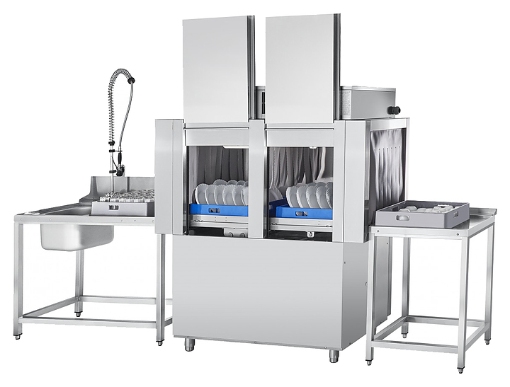 Туннельная посудомоечная машина Abat МПТ-1700 используется на предприятиях общественного питания и торговли для мойки тарелок, стаканов, бокалов, столовых приборов, а также гастроемкостей и противней. Модель оснащена электронной панелью управления и ванной со скругленными углами, облегчающими гигиеническую уборку машины. Детали, контактирующие с водой, и облицовка выполнены из нержавеющей стали AISI 304, моющие и ополаскивающие разбрызгиватели - из нержавеющей стали AISI 304 и AISI 321. Комплектация: